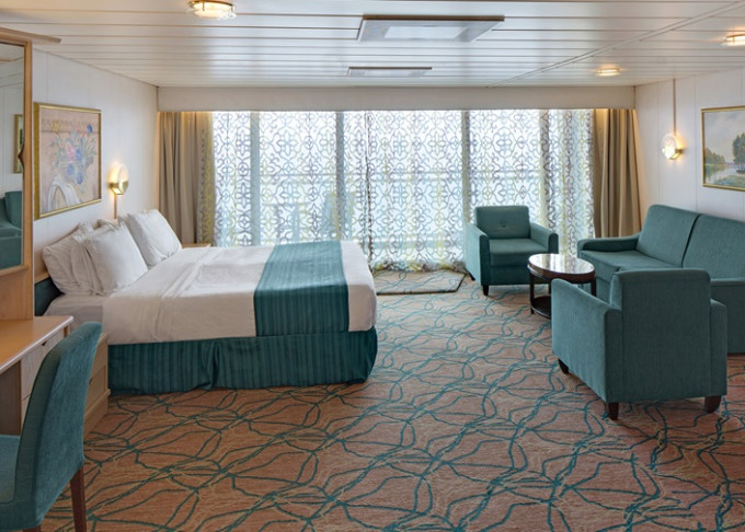 | VO - Ocean View Suite (bez balkonu) / 2 ložnice 49 m². Panoramatické neotevíratelné okna. 8. paluba. Max 8 osob. | 92 577 Kč 92 577 Kč za osobu | ||