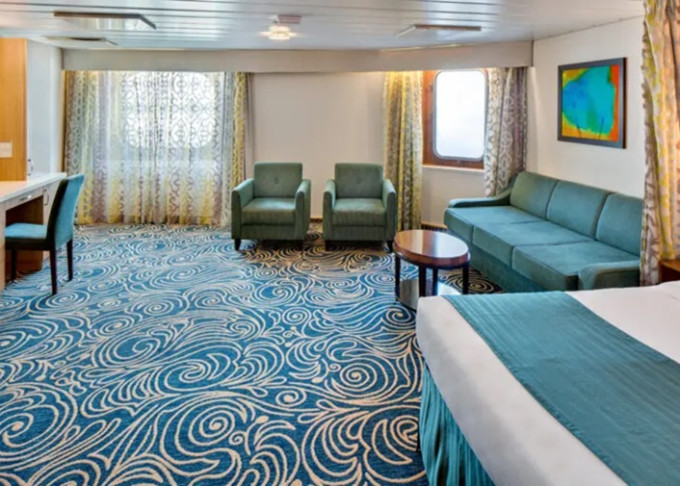 | VO - Ocean View Suite (bez balkonu) / 2 ložnice 49 m². Panoramatické neotevíratelné okna. 8. paluba. Max 8 osob. | 122 468 Kč 30 617 Kč za osobu | ||