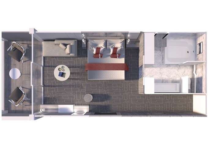 | S1 - Sky Suite 30 m² + balkon 7 m². 7. až 12. paluba. Max 4 osoby. Výhody Suite. | 326 715 Kč 326 715 Kč za osobu |