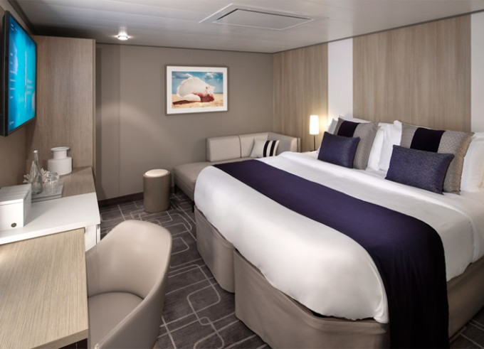 Základní vybavení všech kajut: koupelna s WC, fén, toaletní potřeby; lůžka, dostatek úložných prostor, toaletka se zrcadlem, individuálně nastavitelná klimatizace, TV, župany, trezor, minibar.