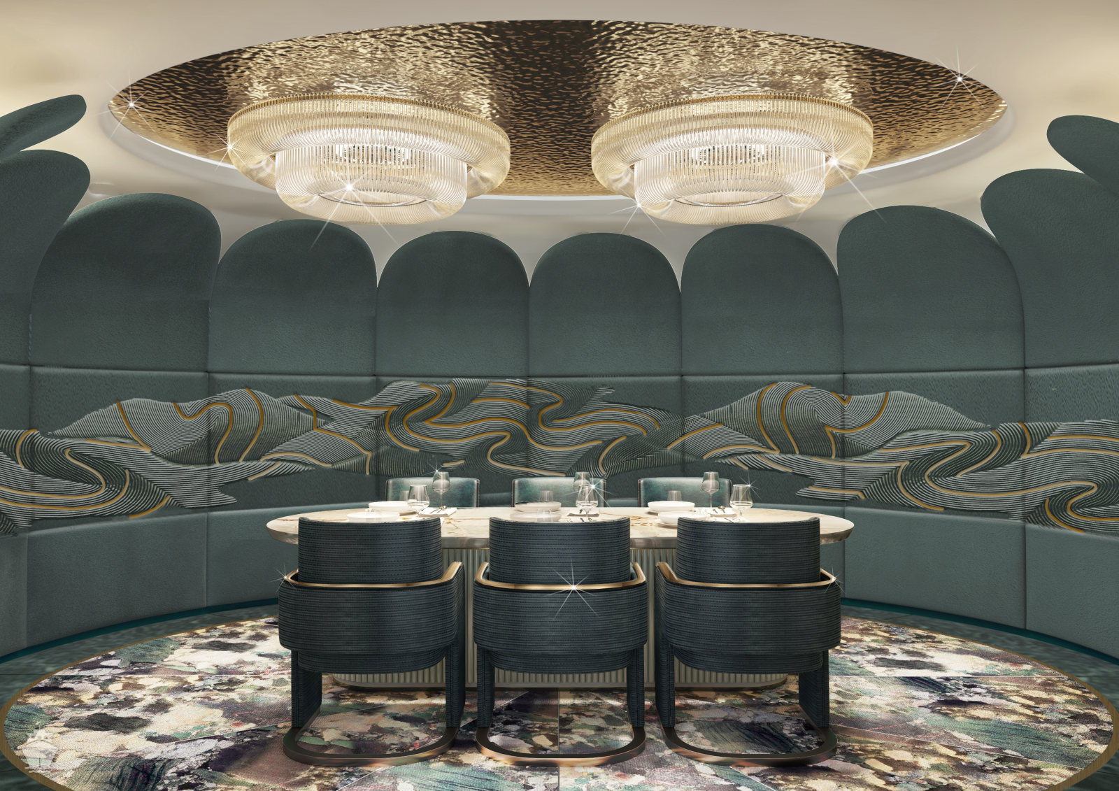 - Venkovní pohyblivá plošina Magic Carpet® – světově první salonek a prostor na moři se nachází na okraji lodi a nabízí nový způsob pití, stolování a společenských setkání, přičemž si můžete užívat ničím nerušeného panoramatického výhledu.