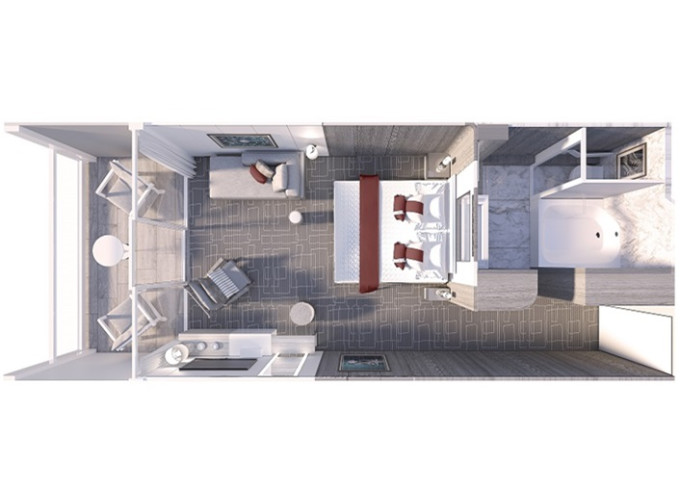 | EV - Edge Villa s balkonem 69 m² + terasa s vířivkou 20 m². 2podlažní apartmán. Max 4 osoby. 15/16. paluba. Výhody Suite. | 930 185 Kč 930 185 Kč za osobu | ||