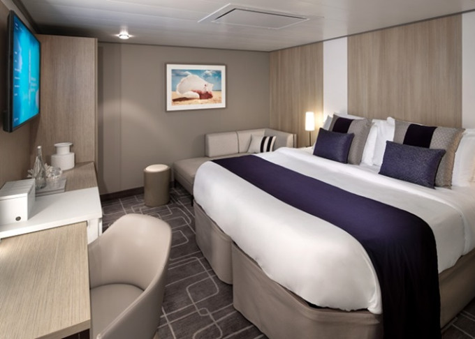 Základní vybavení všech kajut: koupelna s WC, fén, toaletní potřeby; lůžka, dostatek úložných prostor, toaletka se zrcadlem, individuálně nastavitelná klimatizace, TV, župany, trezor, minibar.