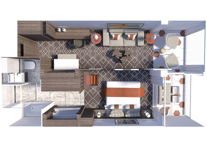 | CS - Celebrity Suite 43 m² + balkon 5 m². 11/12. paluba. Max 4 osoby. Výhody Suite. | 585 130 Kč 292 565 Kč za osobu | ||