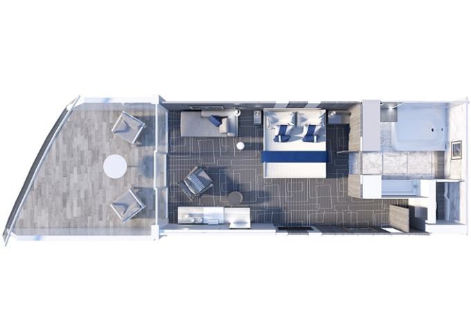 | CS - Celebrity Suite 43 m² + balkon 5 m². 11/12. paluba. Max 4 osoby. Výhody Suite. | 580 570 Kč 580 570 Kč za osobu | ||