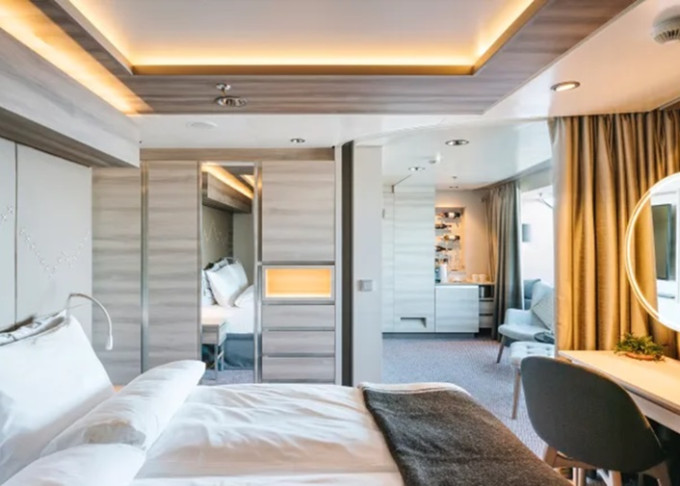| MD - Expedition Large Suite s balkonem 35 m². Balkon. TV, minibar, varná konvice, kávovar, župany. ♿ | 595 553 Kč 297 776 Kč za osobu | ||