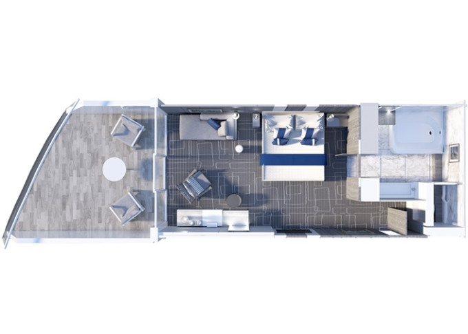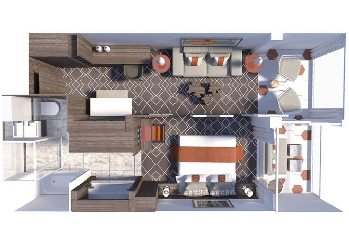 | CS - Celebrity Suite 37 m² + balkon 9 m². 11/12. paluba. Max 4 osoby. Výhody Suite. | 684 597 Kč 684 597 Kč za osobu |