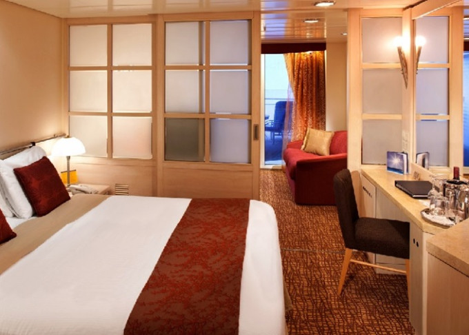 Základní vybavení všech kajut: koupelna s WC, fén, toaletní potřeby; lůžka, dostatek úložných prostor, toaletka se zrcadlem, individuálně nastavitelná klimatizace, TV, župany, trezor, minibar.