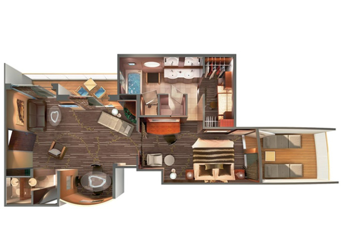 | S4 - Deluxe Family Suite 51-55 m² / balkon 5 m². Výhody Suite. 11. paluba - vpředu, střed. Max 6 osob. | 239 773 Kč 119 886 Kč za osobu | ||