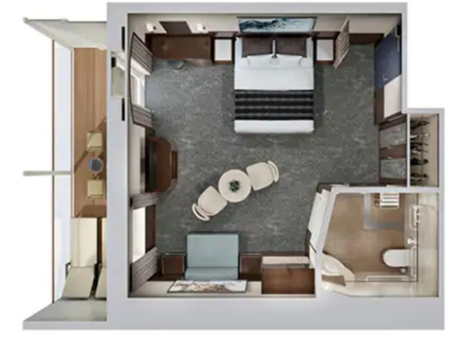 | SE - Forward-facing Penthouse 52 m² / balkon 18-22 m². Výhody Suite. 8/9. paluba - vpředu. Max 3-5 osob. | 326 364 Kč 163 182 Kč za osobu |