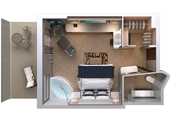 | B1 - Kajuta s balkonem Aft-facing od 20 m² / balkon od 4 m². 9. až 15. paluba. Max 2-3 osoby. | 63 790 Kč 31 895 Kč za osobu | ||