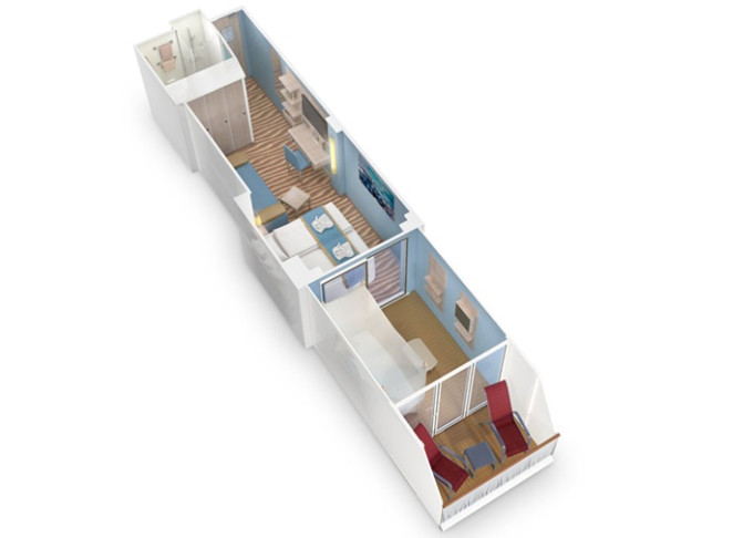 | VC - Kajuta s verandou Komfort PREMIUM od 17 m²/ lounge 7 m²/ balkon od 4,5 m². Cenový model Premium. Max 4 osoby. | 52 615 Kč 26 308 Kč za osobu |