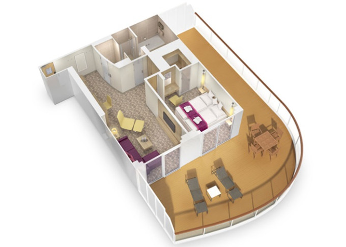 Rodinné kajuty jsou na palubách 15, 16 a 17; na palubě 16 se nachází Mini club, Kids club a Spacey Wave Club.