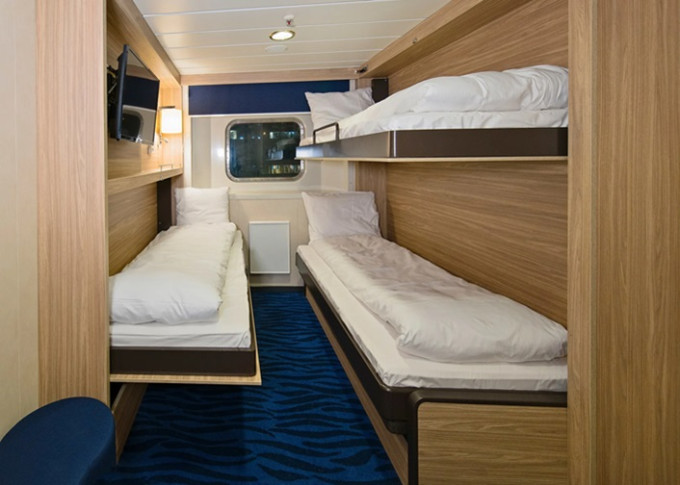 | L2 - Vnější kajuta Polar 8-11 m². Neotevíratelné obló s omezeným výhledem. Tv. Max 2 osoby. | 148 224 Kč 74 112 Kč za osobu | ||