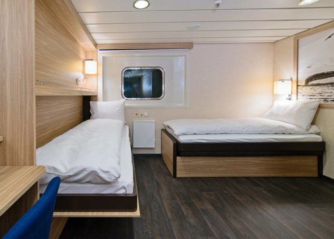 | USPD - Vnější kajuta Arctic Superior Garantovaná Neotevíratelné okno. Varná konvice. Max 2 osoby. | 288 531 Kč 144 266 Kč za osobu | ||