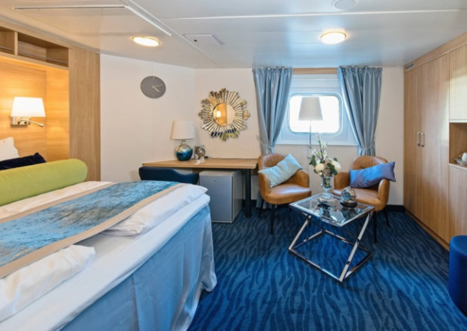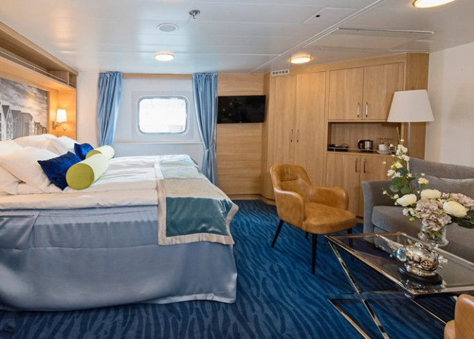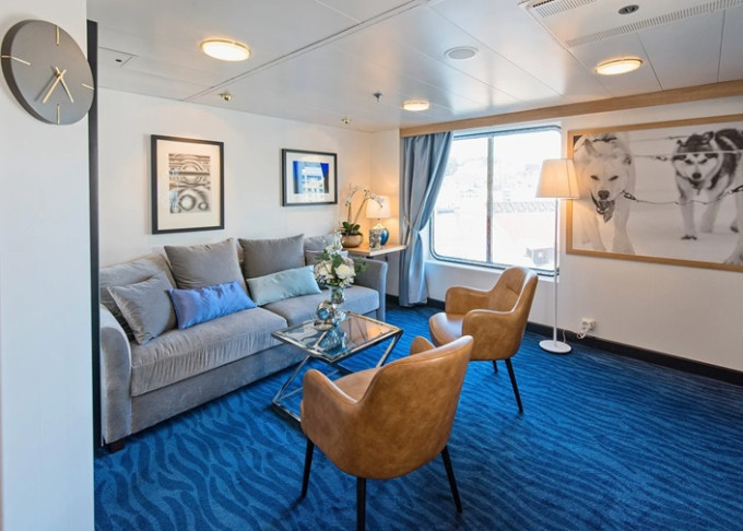 | M4 - Expedition Suite 28-30 m². Panoramatické neotevíratelné okno. Obývací část, Tv, WiFi, varná konvice. Max 4 osoby. | 295 897 Kč 147 949 Kč za osobu | ||