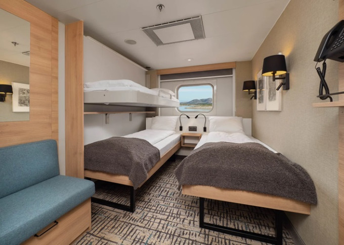 | L3 - Vnější kajuta Polar 8-12 m². Neotevíratelné obló s omezeným výhledem. Max 3 osoby. | 124 172 Kč 62 086 Kč za osobu | ||