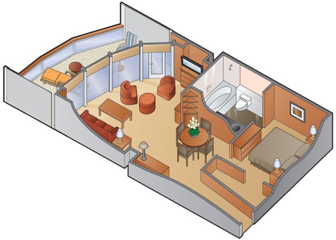 | RS - Royal Suite 52 m² + balkon s vířivkou 18 m² . Koupelna s vířivkou. 6. paluba. Max 3 osoby. Výhody Suite. | 498 240 Kč 498 240 Kč za osobu | ||