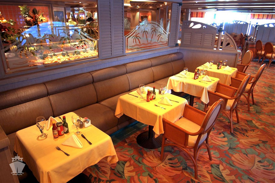 Stravování ve speciálních restauracích a zařízeních je za příplatek: například steakhouse Crown Grill, italská trattorie Sabatini’s, gourmetské restaurace The Chef’s Table nebo Chef’s Table Lumiere, italská zmrzlina Gelato aj.