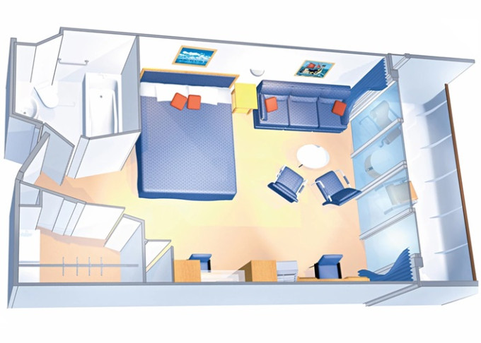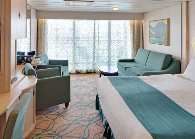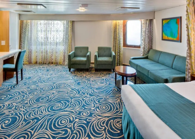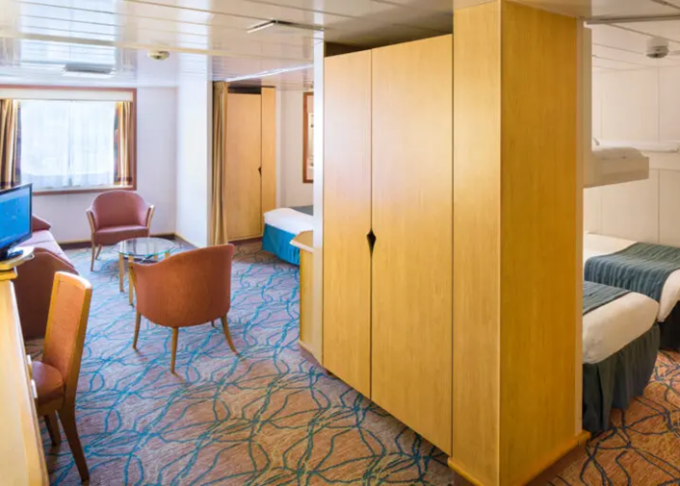 | VO - Ocean View Suite (bez balkonu) 44 m². Panoramatické neotevíratelné okna. Výhody Royal Suite Class. 8. paluba. Max 6 osob. | 125 952 Kč 41 984 Kč za osobu |