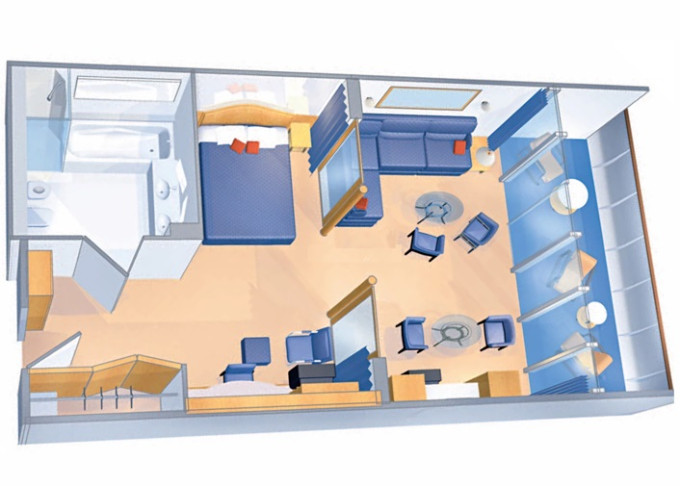 | OS - Owner’s Suite s balkonem 48 m² / balkon 11 m². Výhody Royal Suite Class. 8. paluba. Max 4 osoby. | 97 639 Kč 32 546 Kč za osobu | ||