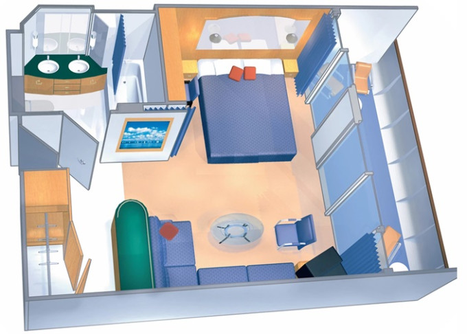 | 1K - Velká vnější kajuta Ultra Spacious 56 m². Neotevíratelné okno. 8. paluba. Max 8 osob. | 67 548 Kč 16 887 Kč za osobu | ||