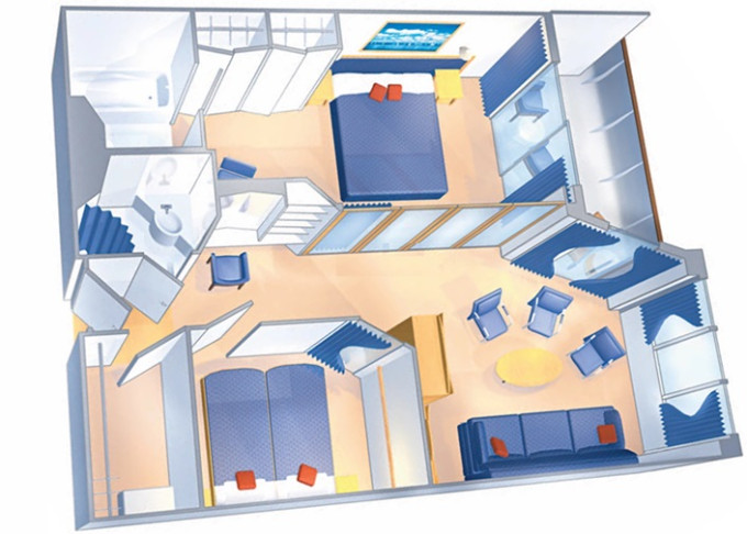 | RS - Royal Suite s balkonem 104 m² / balkon 14 m². Výhody Royal Suite Class. Koupelna s vířivkou. 8. paluba. Max 4 osoby. | 116 254 Kč 58 127 Kč za osobu | ||