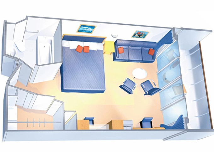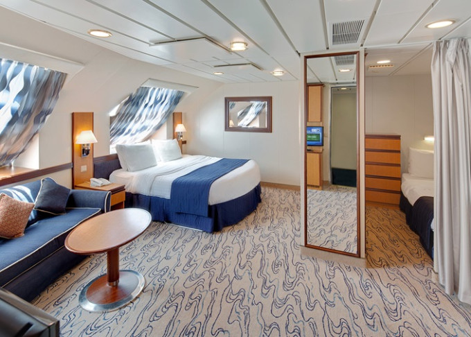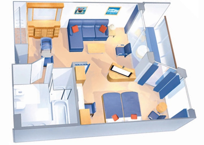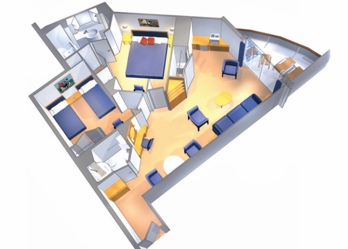 | VT - Ocean View Suite / 2 ložnice (bez balkonu) 55 m². Velké neotevíratelné okna. Výhody Royal Suite Class. 10. paluba. Max 8 osob. | 46 401 Kč 46 401 Kč za osobu |