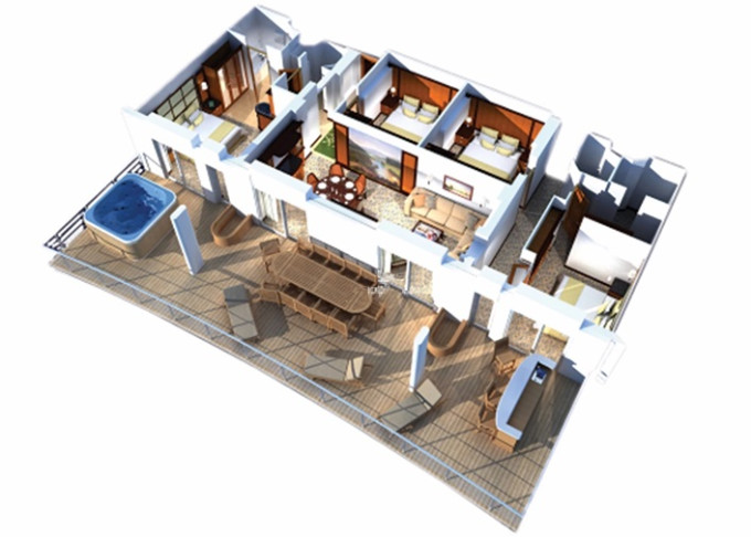 | VS - Villa Suite / 4 ložnice 112 m² / balkon s vířivkou 75 m². Výhody Royal Suite Class. 6. paluba. Max 14 osob. | 123 320 Kč 30 830 Kč za osobu |