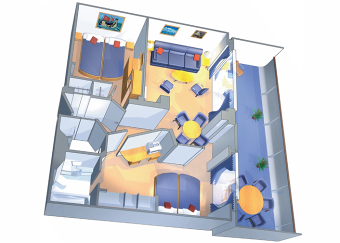 | GT - Grand Suite s balkonem / 2 ložnice 50 m² / balkon 18 m². Výhody Royal Suite Class. 8/9. paluba. Max 8 osob. | 159 649 Kč 39 912 Kč za osobu | ||