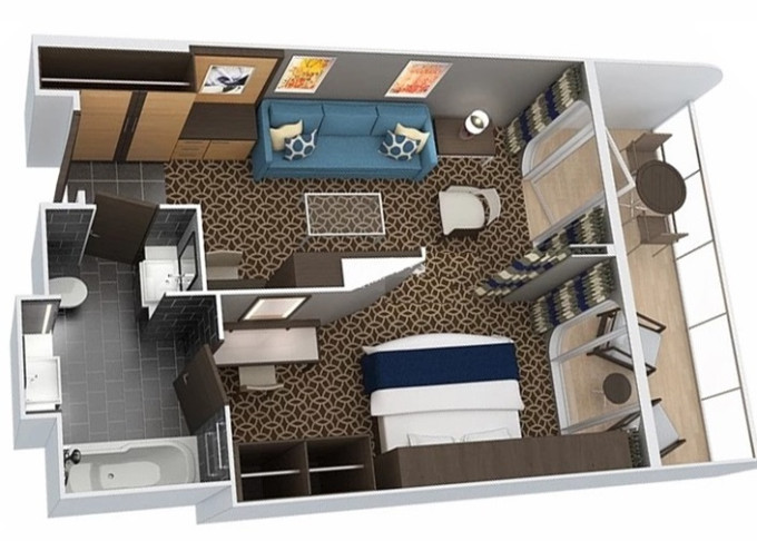 | 3U - Vnitřní kajuta s virtuálním balkonem 15 m². Obrazovka velkosti balkonových dverí s promítaným výhledem. 7/8/9/10/12. paluba. Max 2 osoby. | 41 190 Kč 13 730 Kč za osobu |