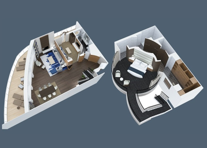 - Prostorné kajuty pro skupiny – ultra prostorné pokoje s výhledem na oceán až po špičková Villa Suite se čtyřmi ložnicemi.