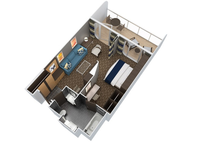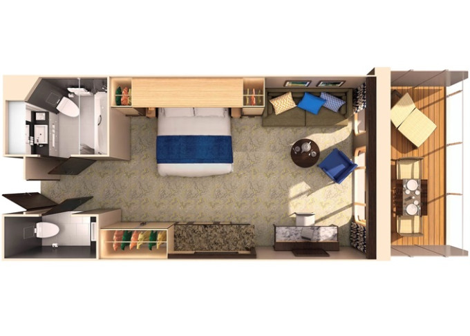 | J3 - Junior Suite s balkonem 25 m² / balkon 7,5 m². Výhody Royal Suite Class. 8/9/10. paluba. Max 4 osoby. | 138 202 Kč 34 551 Kč za osobu | ||