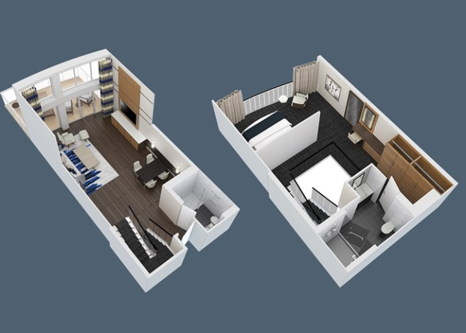 | SL - Sky Loft Suite s balkonem 69 m² / balkon 17 m². 2-podlažní apartmán. Výhody Royal Suite Class. 8/10. paluba. Max 4 osoby. | 128 982 Kč 128 982 Kč za osobu |