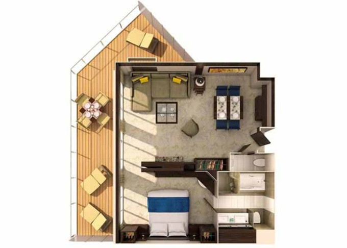 | SL - Sky Loft Suite s balkonem 69 m² / balkon 17 m². 2-podlažní apartmán. Výhody Royal Suite Class. 8/10. paluba. Max 4 osoby. | 132 239 Kč 66 120 Kč za osobu |