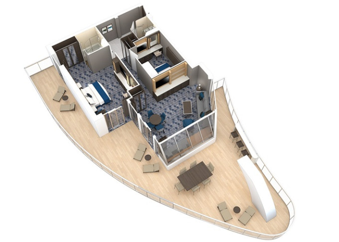 | A1- Suite Spacious AquaTheater / 2 ložnice 76 m² / balkón 71 m². 2 ložnice. Výhody Royal Suite Class. 8. paluba. Max 8 osob. | 213 191 Kč 213 191 Kč za osobu |