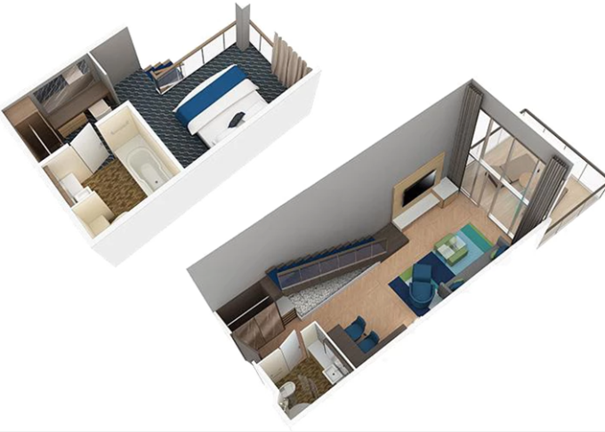 | L1 - Crown Loft Suite 51 m² / balkón 11 m². 2podlažní apartmán. Výhody Royal Suite Class. 18. paluba. Max 4 osoby. | 121 215 Kč 121 215 Kč za osobu |