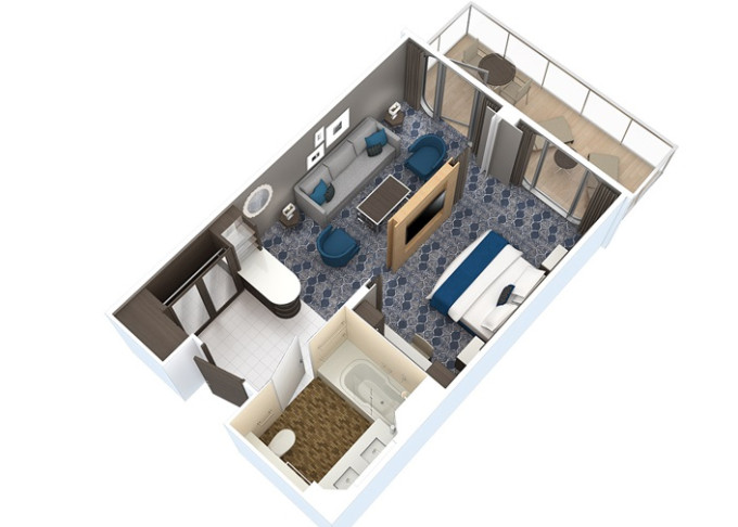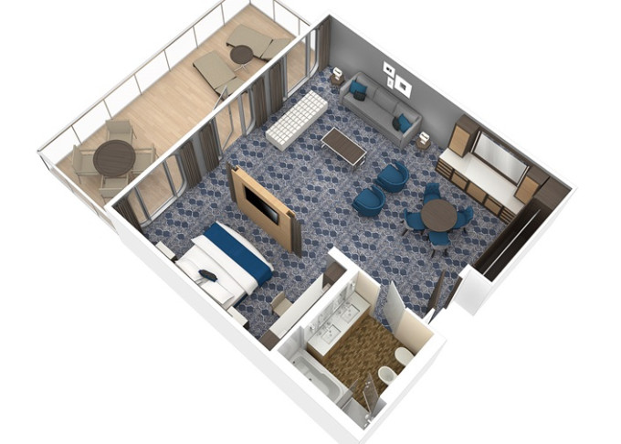 | A3 - Spacious AquaTheater Suite 56 m² / balkón 58 m². Výhody Royal Suite Class. 11/12/14. paluba. Max 4 osoby | 137 150 Kč 137 150 Kč za osobu |