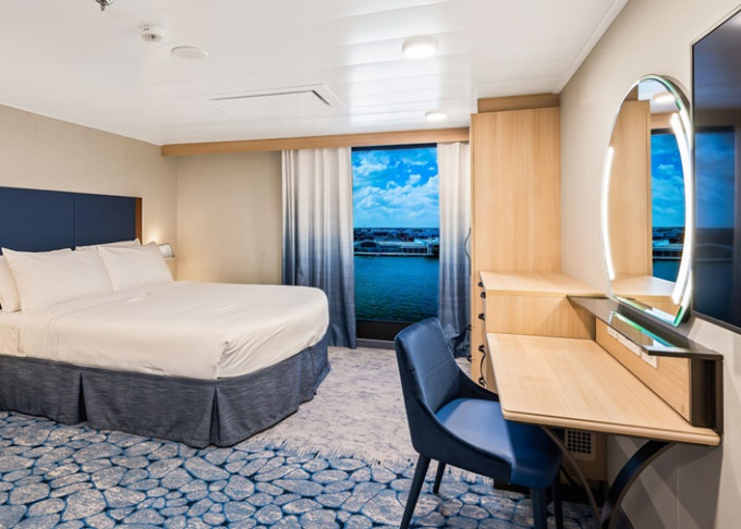 | 2T - Kajuta vnitřní Promenade view/ okno 18 m². Neotevíratelné okno (výhled na Promenade). 7. paluba. Max 4 osoby | 35 678 Kč 17 839 Kč za osobu |
