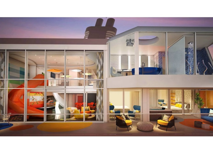 | US - Ultimate Family Suite 105 m² / balkon s vířivkou 20 m². Výhody Royal Suite Class. 2 podlaži, 3 ložnice, 3 koupelny. Stolní hokej a stolní tenis, sklouzavka 3D kino, videokonzoly. 17. paluba. Max 11 osob. | 1 224 027 Kč 612 014 Kč za osobu | ||