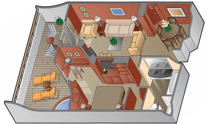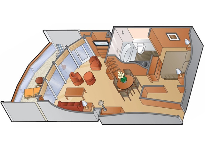 | RS - Royal Suite 50 m² + balkon s vířivkou 18 m² . Koupelna s vířivkou. 6. paluba. Max 4 osoby. Výhody Suite. | 346 207 Kč 346 207 Kč za osobu |