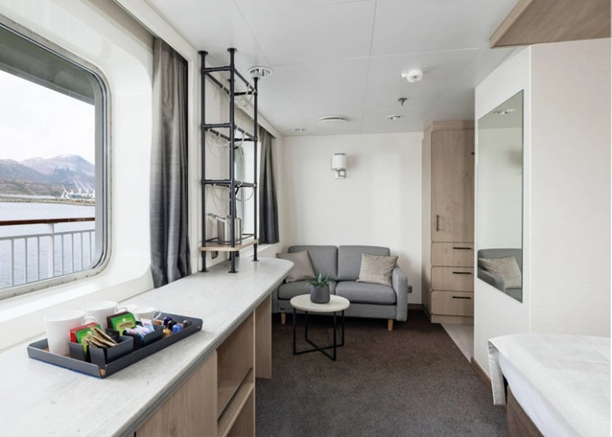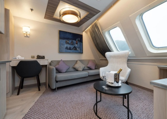 - Expedition Suite M2: 19 - 22 m², Jednopokojové apartmá na 6. palubě, max obsazenost 2 osoby, s TV a soukromým balkonem
