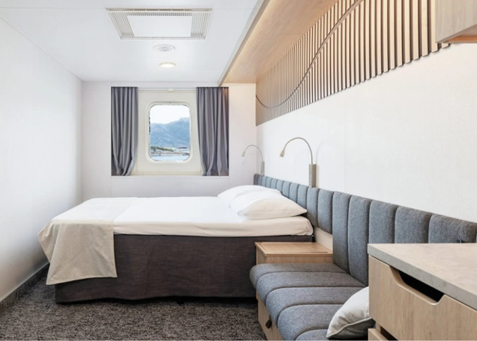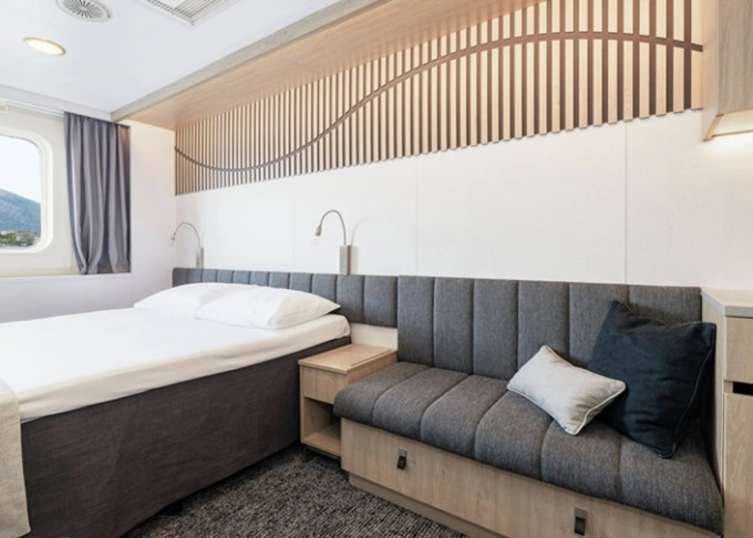 - Při přestavbě v 2020 byly všechny kajuty kompletně renovované a modernizované. Velkorysé použití přírodních skandinávských materiálů, jako vlna, borovice, bříza, dub a žula, do kajut vneslo autentický přírodní pocit.