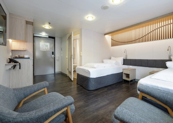 - Expedition Mini suite Q2: 16 - 19 m². Neotvíravé okno. Jednopokojové apartmá na 5. palubě, max obsazenost 2 osoby, s TV. Některé kabiny Q2 mají oddělené postele.