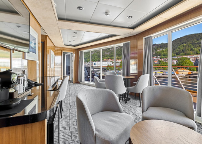| MX - Expedition Owners Suite s balkonem 43-45 m². Balkon, obývací část, TV, varná konvice, minibar, stereo, internet. Max 2 osoby. | 786 743 Kč 393 372 Kč za osobu | ||