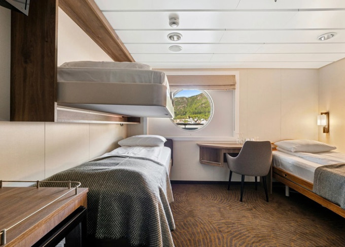 | L2 - Vnější kajuta Polar s okénkem 10-11 m². Neotevíratelné okénka / může být omezený výhled. 2 oddělené postele. Max 2 osoby. | 205 133 Kč 102 566 Kč za osobu |