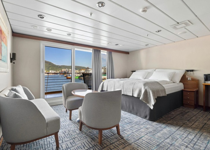| QJ - Vnější kajuta Arctic Superior 16 - 17 m². Neotevíratelné okno s omezeným výhledem. Oddělené postele, obývací část. Tv, varná konvice, minibar. Max 2 osoby. | 281 130 Kč 140 565 Kč za osobu | ||