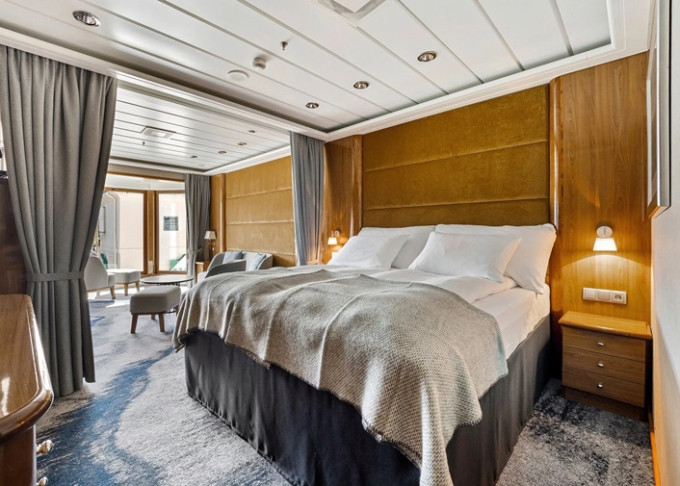 | M2 - Expedition Suite na hornej palube s balkónom 23 m². Balkon (některé mají pouze okno!). 1 nebo 2 pokoje. Obývací část, TV, varná konvice, minibar. Dárek na uvítanou. Max 2 osoby. | 443 201 Kč 221 601 Kč za osobu |