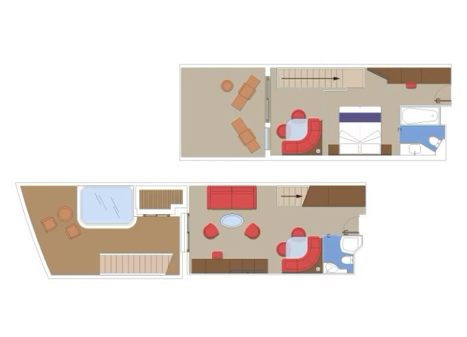 | YCD - Duplex Suite Yacht Club 46 m² + balkón 6 m². Mezonet, 2 koupelny (1 s vanou) Max 4 osoby. 16. paluba. Cenový model MSC Yacht Club. | 186 508 Kč 93 254 Kč za osobu |