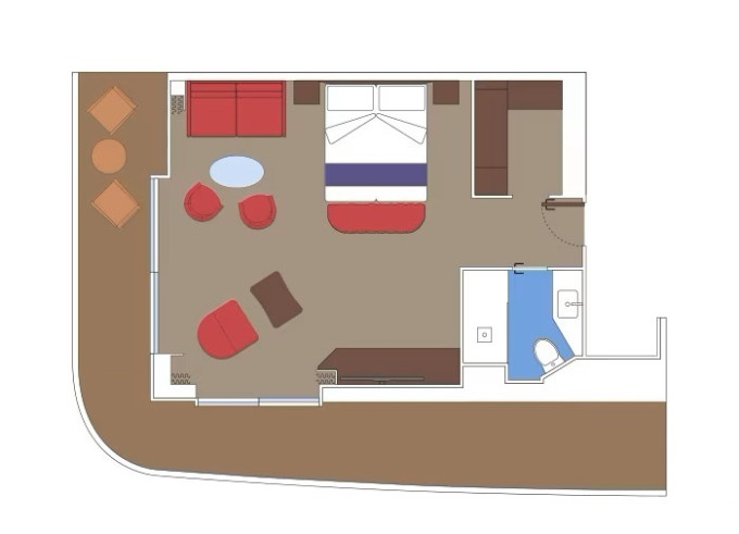 - ubytování v plně vybavené kajutě: vlastní koupelna se sprchou a WC, interaktivní TV, telefon, trezor, vysoušeč vlasů, regulovatelná klimatizace, minibar (za poplatek), Wi-fi (za poplatek)